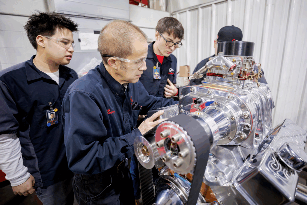 At WyoTech, that knowledge isn’t all learned from a textbook. Instead, it’s earned through hands-on training. Students spend roughly 50% of their time in the shop, tearing down, rebuilding, and testing real engines across different platforms.